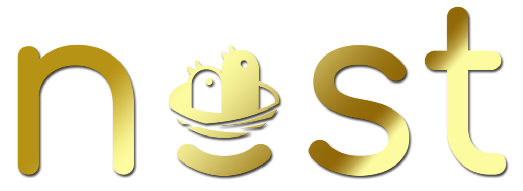 Pada Logo, terdapat sarang yang berisi 2 burung yang siap makan, bermakna NEST sebagai wadah untuk memberikan edukasi (makanan ilmu) untuk member-member dalam komunitas NEST.